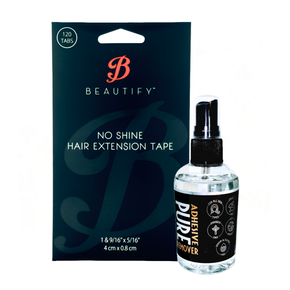 Beautify No-Shine Hair Extension Tape & PURE Remover Set, 2PC | Pre-Cut Clear Strips with Strong Initial Hold for Tape-In Wefts - Up to 6 Weeks Wear